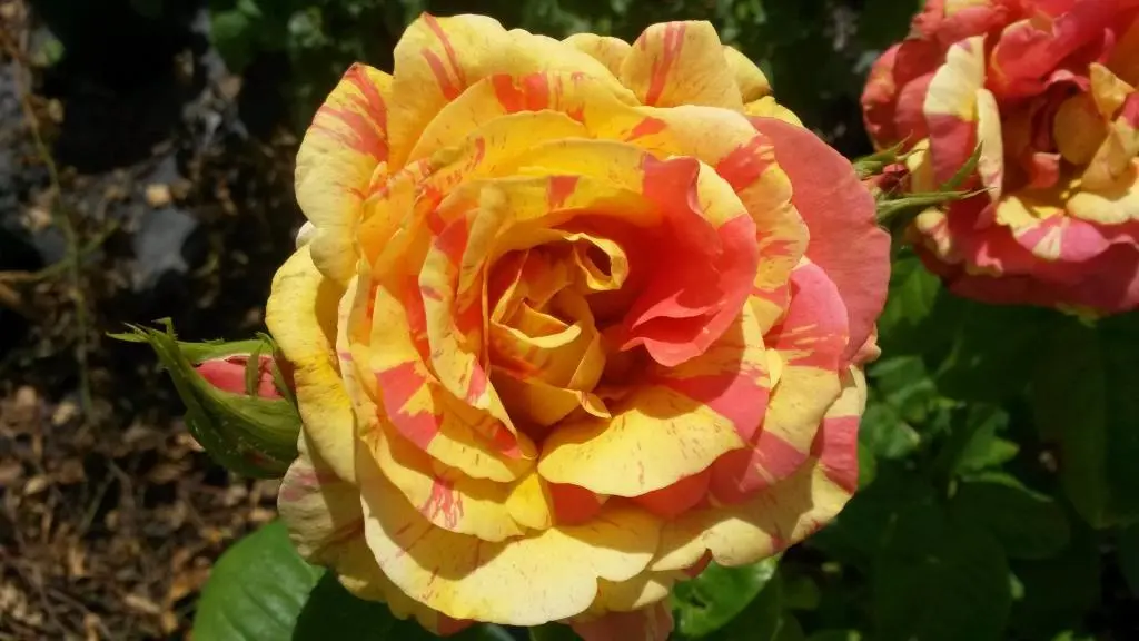 High-centred, perfectly shaped buds open to exotic blooms in pale gold and lemon, richly striped and splashed with candy pinks and near reds. Each flower is uniquely beautiful, offering a vibrant and striking display. This rose is an excellent choice for cutting, producing long, strong stems and boasting a superb vase life. A truly colourful and distinctive variety that stands out in any garden or bouquet.